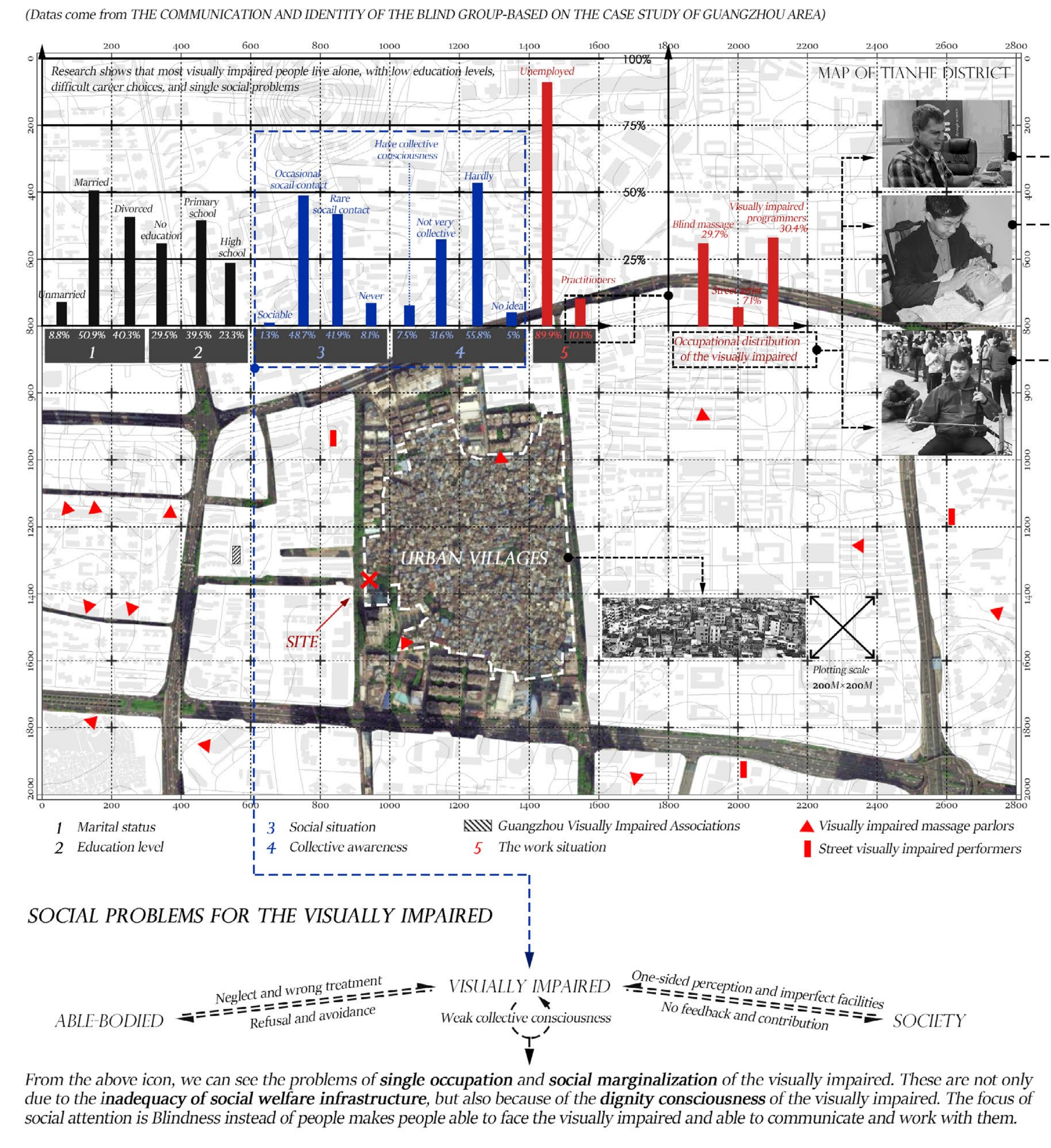 The visually impaired people have always been concerned by the society,andthe society has given them different aspects and levels of care. However, whenphysical buildings and infrastructure are involved in this problem, they oftenonly solve the basic life needs of safety and convenience.